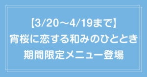 3月20日(金)より、全店にて「🌸宵桜に恋する和みのひととき🌙」の期間限定メニューの提供を開始いたします。