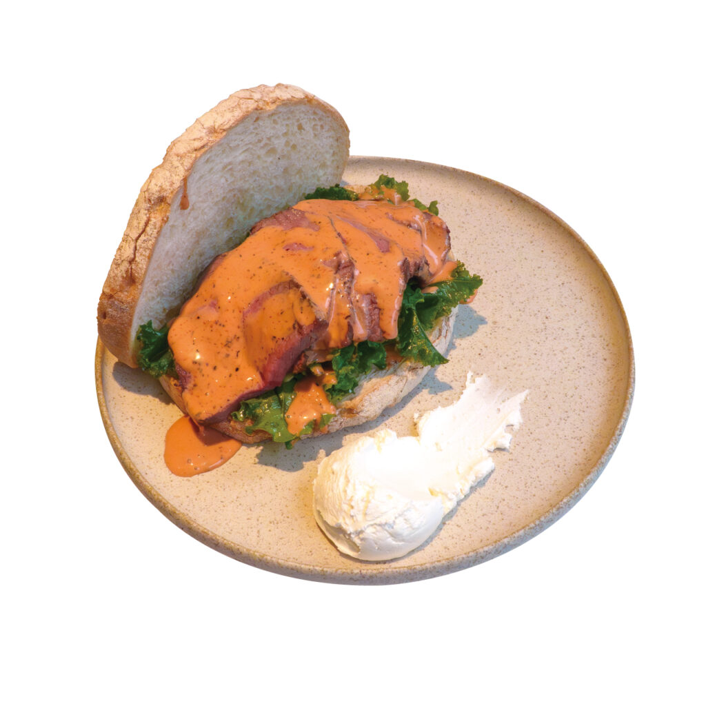 食材:カンパーニュ / ローストビーフ / オリジナル焼肉ソース /グリークヨーグルト / アカシア蜂蜜 / オリーブオイル /アボカド / ケール / ピクルス / コチュジャン