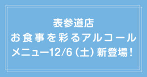 【表参道店】お食事を彩るアルコールメニュー12/6(土)新登場!